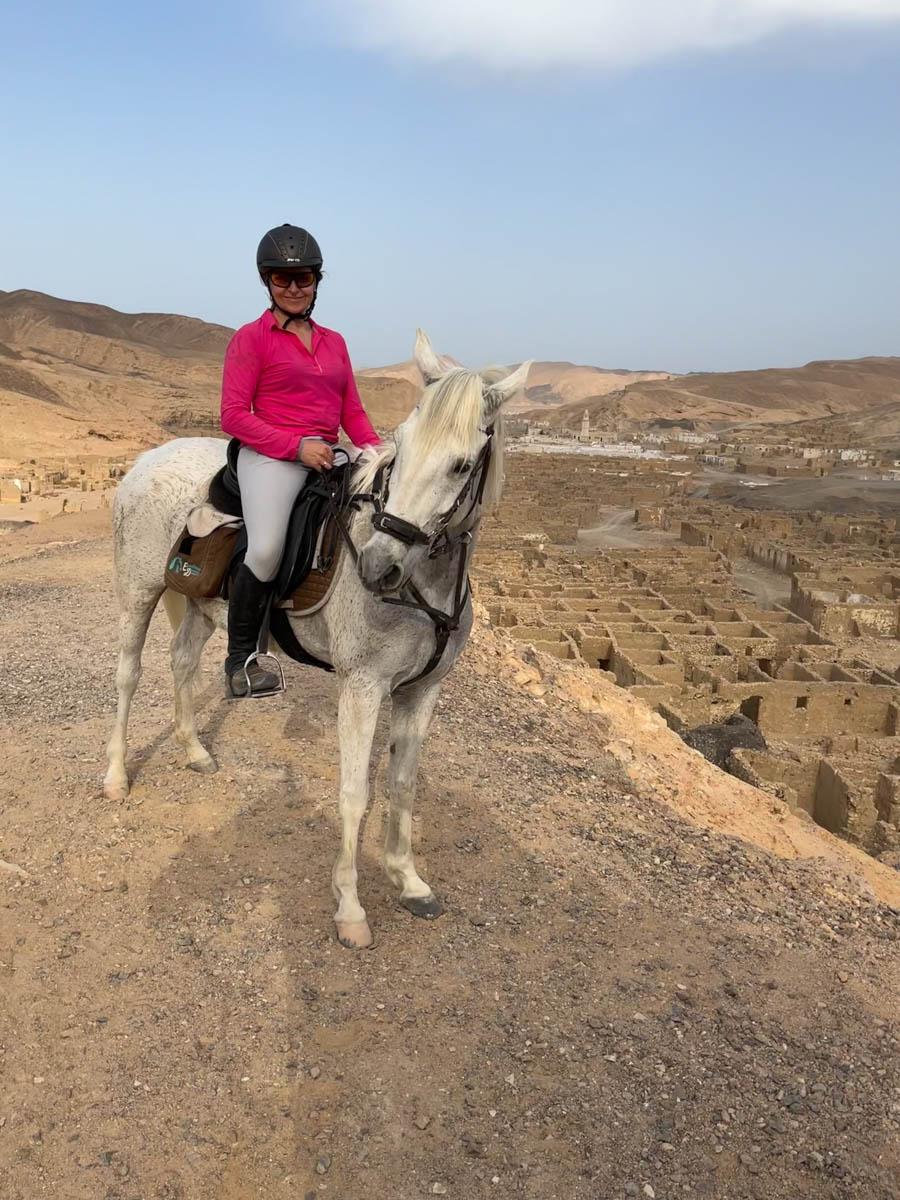 Op zoek naar een paardrijvakantie met avontuurlijke tochten in een filmische omgeving? Op Arabische paarden en Arabische kruisingen rijd je door bergachtig woestijngebied naar onder meer het bizarre Umm Al Huwaytat, ‘Ghost Town’ in Egypte. Een speciale paardrijvakantie voor avontuurlijke ruiters!