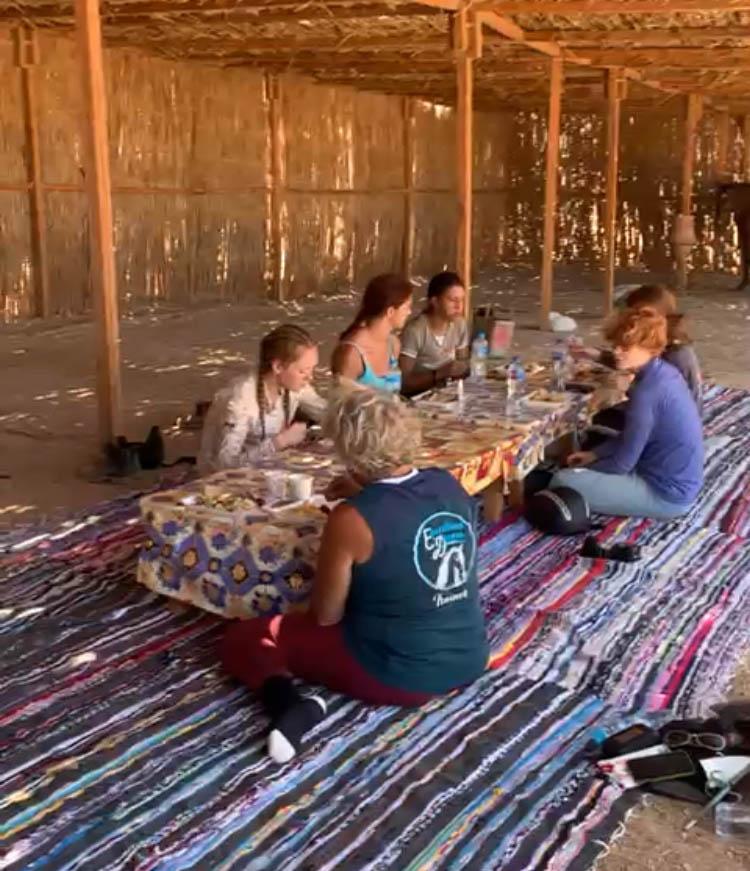 Dag 3:Vandaag maak je een volle dagtocht van ongeveer vijf uur paardrijden. Deze tocht voert je naar een bedoeïnenkamp gesitueerd op een prachtige plek in de woestijn. Je zult overweldigd zijn door het adembenemende landschap. Hier geniet je van de lunch die in bedoeïenstijl wordt bereid. Daarna stijg je weer op en rijd je terug naar de stallen.
