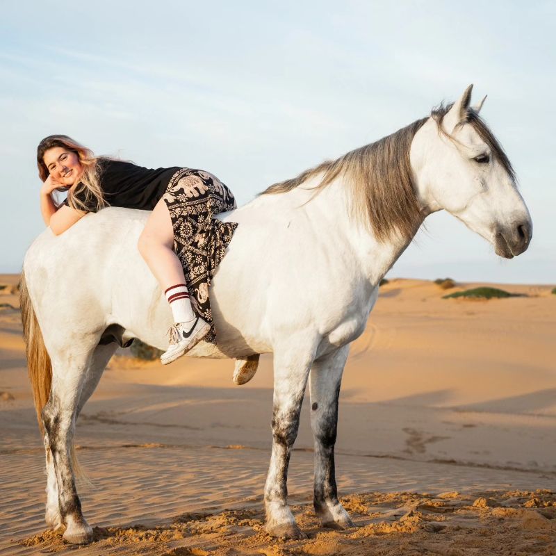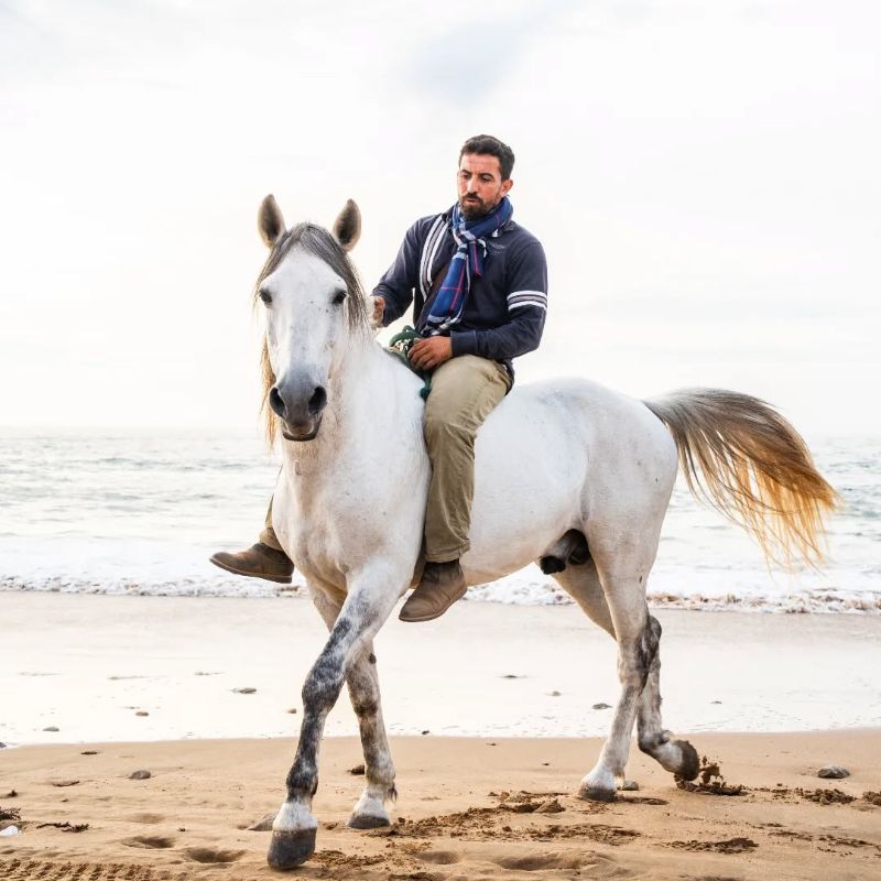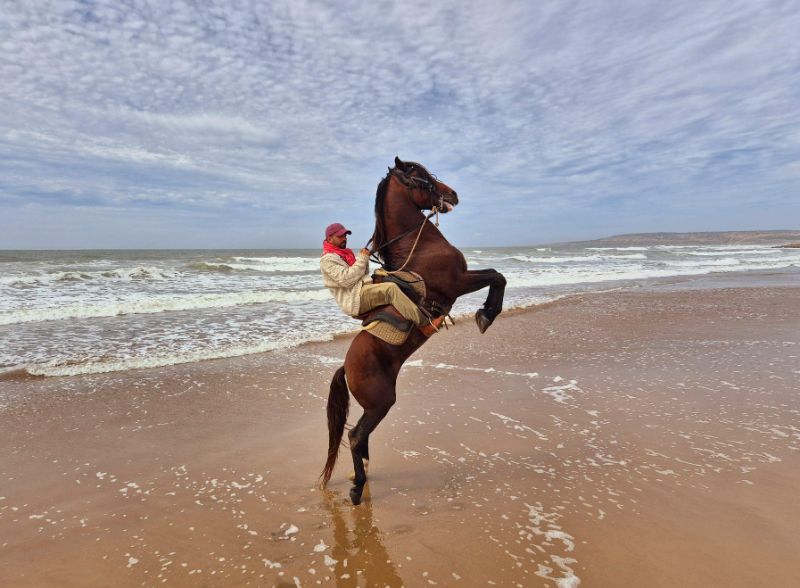 Stel je voor: een immens wit strand met aan de ene kant geweldige golven met witte schuimkoppen die vanuit de azuurblauwe oceaan het strand op rollen en hoge zandduinen aan de andere kant. Terwijl het zonnetje schijnt rijd jij in volle galop over het strand om even later rustig via de duinen naar de heuvels in het land te rijden. Op andere momenten verken je het heuvelachtige land waarin fotogenieke Amazigh-dorpjes zijn verstopt.