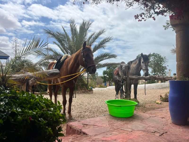 Berber paarden en Arabisch-Berberse kruisingen verdeeld in twee stallen, zijn goed getraind om onvergetelijke tochten met je te maken. De paarden worden op een natuurlijke manier gehouden waardoor ze optimaal op elkaar zijn afgestemd. Dit geldt zowel voor de paarden die op het complex staan met een grote paddock en een terrein waar de paarden vrij kunnen rondlopen als voor het paardencomplex dat op 25 minuten van de accommodatie ligt. Dit complex beschikt over boxen.