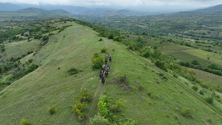 De Dionysus trektocht is een culinaire en culturele ontdekkingsreis te paard door het hart van het Macedonische wijnland. Tijdens deze volledig verzorgde 7-daagse ruitervakantie leg je tussen de 130 en 163 kilometer af, afhankelijk van het seizoen. Je rijdt in kleine groepjes onder begeleiding van een ervaren Engelssprekende gids, met betrouwbare en goed getrainde paarden.