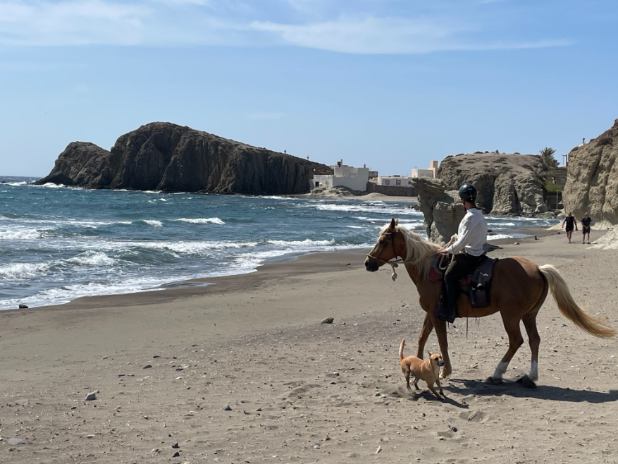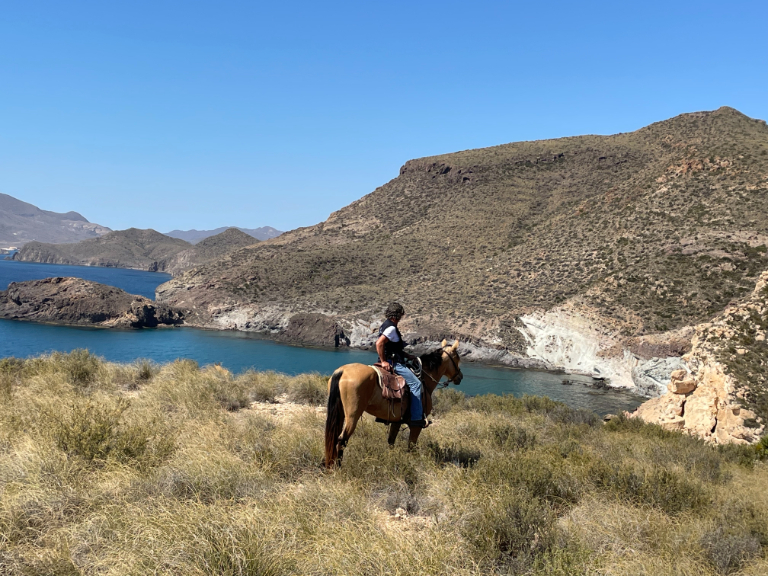 Het Cabo de Gata-Níjar natuurpark is een beschermd gebied aan de zuidoostkust van Spanje en staat bekend om zijn vulkanische oorsprong, kristalheldere baaien en ruige kliffen. Dit natuurpark, het grootste kustnatuurreservaat van Andalusië, biedt een afwisselend landschap van woestijnachtige vlaktes, glooiende heuvels en traditionele witte dorpjes. Dankzij het droge en zonnige klimaat is het gebied perfect voor paardrijden, het hele jaar door.