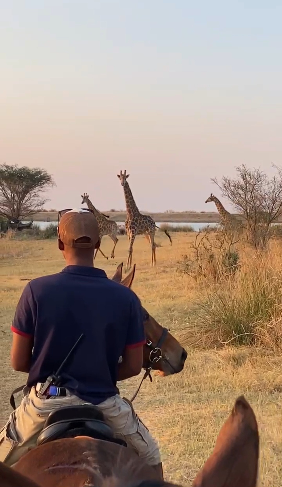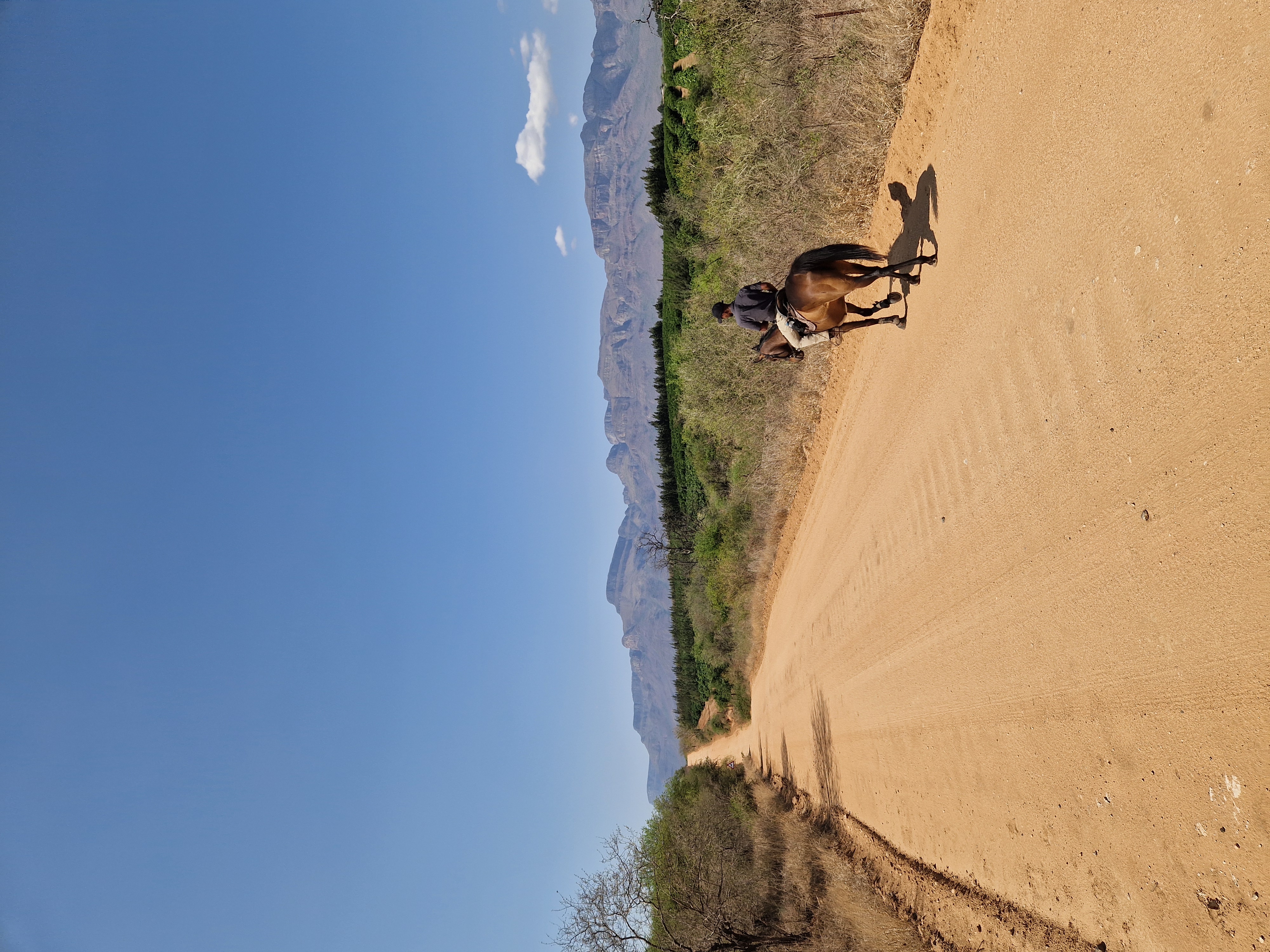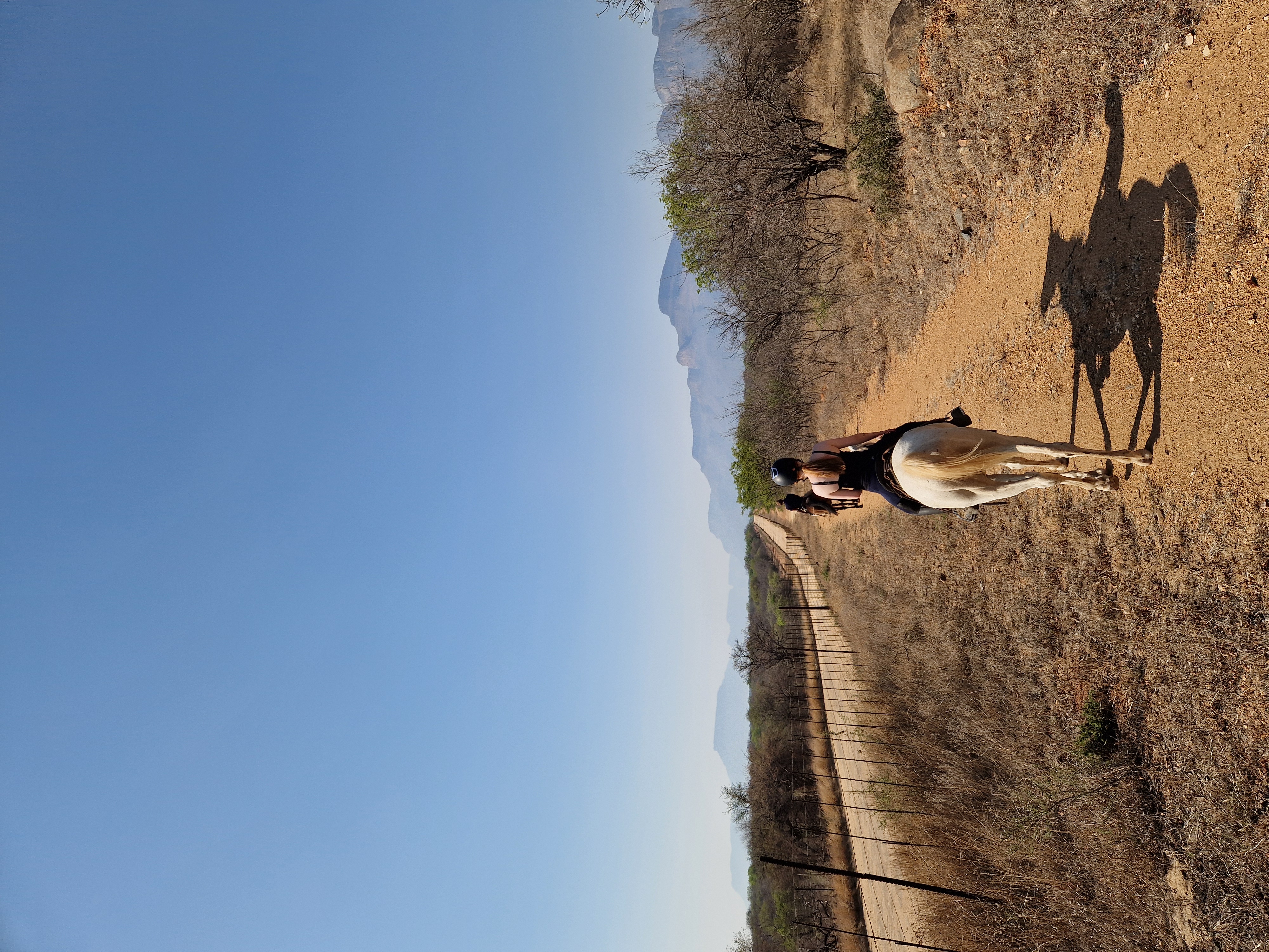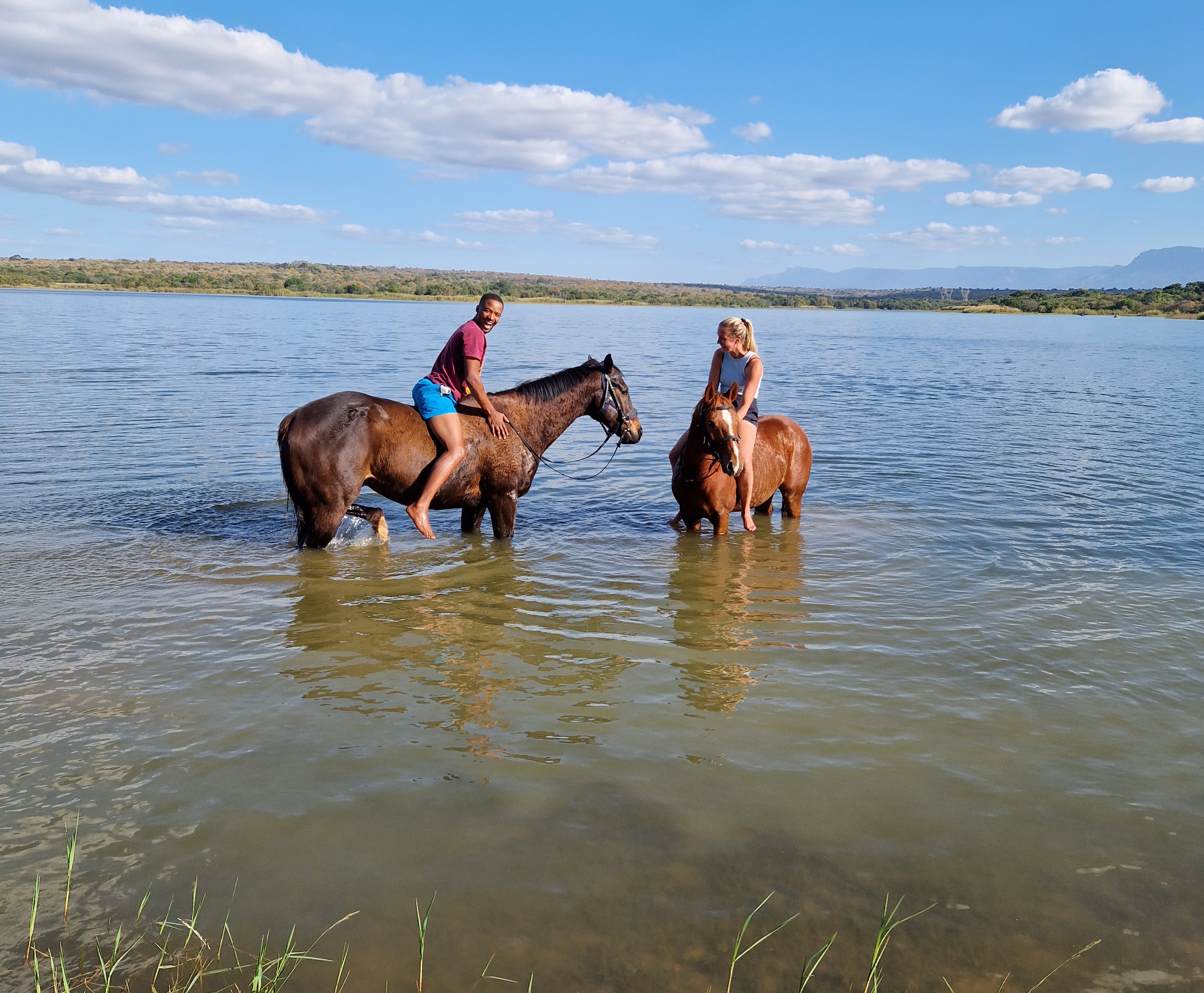 Je rijdt dagelijks ongeveer 3 tot 5 uur, afhankelijk van het weer, door een zeer afwisselend landschap van mooie zandpaden, open savannes, rivieroevers en boomgaarden met citrusbomen. Onderweg zie je de wilde dieren, waaronder giraffen, zebra's, kudu's, struisvogels, gnoes, waterbokken, nyala, impala, wilde zwijnen, nijlpaarden en krokodillen. Er wordt gereden op zowel het eigen terrein als de omliggende terreinen, in totaal zo'n 1000 hectare aan natuur. Meestal maak je een ochtendrit van circa drie uur en een kortere rit van ongeveer twee uur in de middag, met volop mogelijkheden om te galopperen. Je zadelt en verzorgt je paard zelf voor en na de rit. Tijdens je verblijf rijd je op verschillende paarden. Eén keer per week wordt er een rit georganiseerd die wordt afgesloten met een drankje bij zonsondergang.